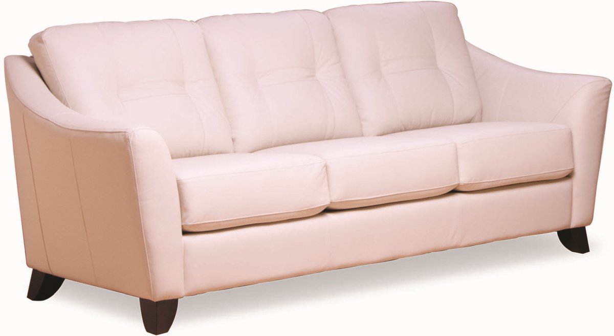 Ce canapé en cuir présente de longues pattes, des coussins de dossier capitonnés et des coutures décoratives.Read More
